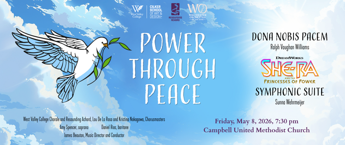 Join Resounding Achord, the West Valley College Chorale, and the Winchester Orchestra of San Jose as they present Power Through Peace. The concert features Ralph Vaughan Williams’ Dona Nobis Pacem coupled with a Symphonic Suite from the DreamWorks’ Netflix animated series She-Ra and the Princesses of Power by Sunna Wehrmeijer.